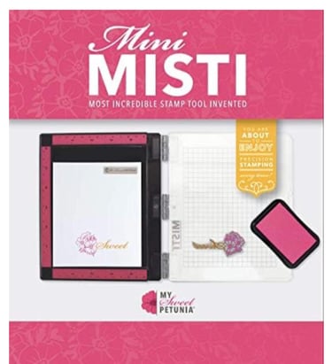 To start, we will take a piece of Tim Holtz Distress Heavystock that has been trimmed to A2 size. I am utilizing my MISTI stamp positioning tool paired with a Waffle Flower grip mat to secure the cardstock in position. Next, I will apply anti-static powder from Taylored Expressions to eliminate any oils from the card panel. Following this, I'll use my Versamark pad to ink the stamp. The MISTI enables me to stamp the image multiple times to guarantee that every part of the stamp leaves an impression. I will then cover the impression with Brutus Monroe Icicle embossing powder and apply heat with a heat gun to melt the powder.